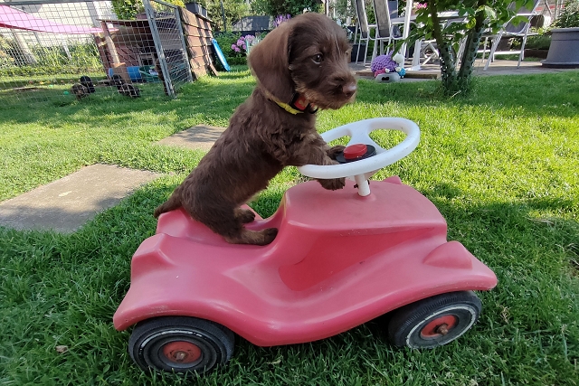 ![]() | Ria Finchen Hündin Gewicht: 2250 g Farbe: braun Halsbandfarbe: orange Finchen zieht nach Menslage. Auf dem landwirtschaftliches Anwesen wird sie Begleiter von zwei Buben und einer Deutschen kurzhaarigem Vorstehhündin. | |